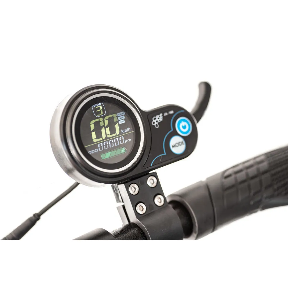 Электросамокат оснащен сиденьем, которое не просто мягкое, а еще и съёмное, регулируется по высоте и имеет амортизаторы. Руль модели регулируется по высоте, складывается. Электросамокат имеет рычаг тормоза, который обеспечивает резкое торможение независимо от ситуации на дороге. Звуковой сигнал на модели обеспечивает безопасность движения. Подсветка на электросамокате обеспечивает яркое свечение и привлекает внимание прохожих.