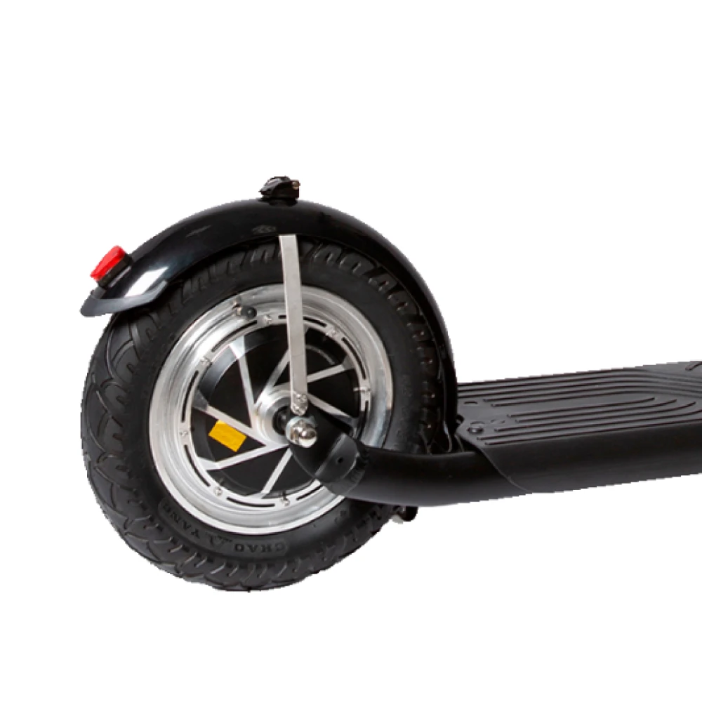 Мощность электросамоката составляет 500 Вт. Плавность хода обеспечена амортизаторами, роль которых выполняют накаченные колеса размером 12 дюймов. Модель предназначена для любителей активного отдыха, способна преодолевать расстояние на одной подзарядке до 35 км пути. Максимальная скорость техники – 35 км/час.