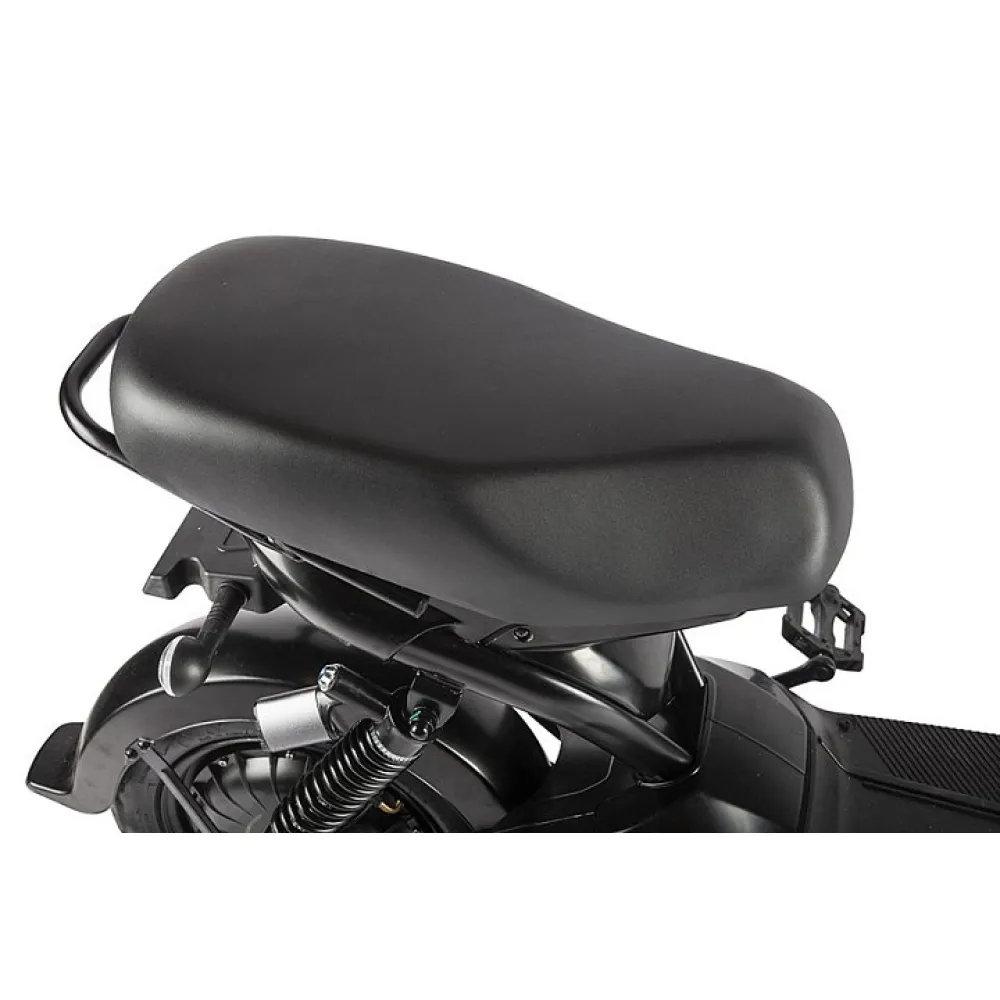 Мощность двигателя составляет 350 Вт, достаточная для развития скорости 25 км/час. Удобство и комфорт езды обеспечены мягким вместительным сиденьем, рассчитанным на двоих. Повторяя анатомические части тела материал изготовления и конструкционные особенности сиденья снижают нагрузку на позвоночник, снимают утомление.