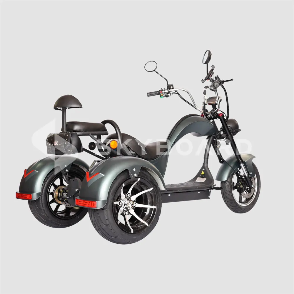 Электроскутер SKYBOARD TRIKE CHOPPER-4000 PRO FAST – мощный и эксклюзивный, первое, что приходит на ум при визуальном ознакомлении с техникой. Изогнутая рама, брутальный дизайн наталкивают на мысли о максимальных скоростях и непередаваемых ощущениях. Со слов производителя предчувствие клиентов является правильным.