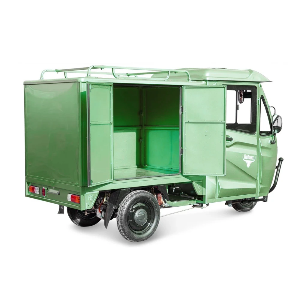 Грузовой электротрицикл Rutrike КАРГО Кабина Дуал зеленый - это инновационное транспортное средство, которое предлагает революционные возможности для грузоперевозок. Сочетая в себе мощность и удобство, этот электротрицикл является идеальным решением для различных бизнес-потребностей.