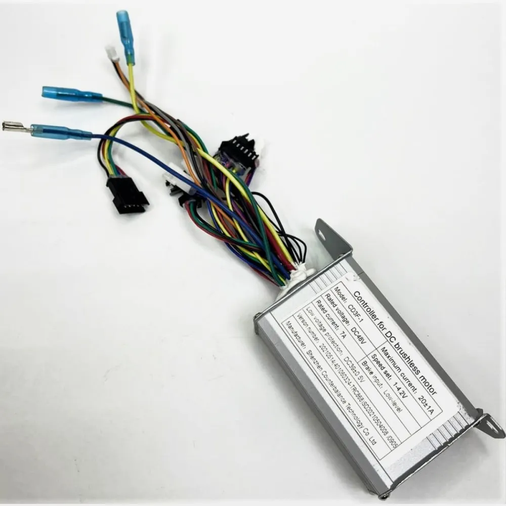 Контроллер для электровелосипеда Kugoo V1 48V – от производителя, выгодное решение при сбоях или выходе техники из строя. Визуально контролер представлен сложным устройством с множественными проводами разного цвета, на концах которых имеются специальные разъемы. При правильном подключении и полном сочетании устройства с моделью электровелосипеда изделие обеспечит преобразование постоянного напряжения АКБ в трехфазный ток для электроколеса. Для покупки товара выгодно, предлагаем связаться с менеджером интернет-магазина по телефону или в онлайн-чате. Ждем ваших звонков!
